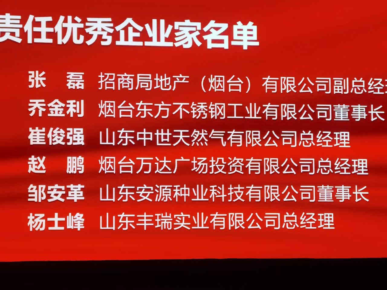 煙臺(tái)東方不銹鋼工業(yè)有限公司榮獲“履行社會(huì)責(zé)任優(yōu)秀企業(yè)三等獎(jiǎng)”、公司董事長(zhǎng)喬金利女士榮獲“履行社會(huì)責(zé)任優(yōu)秀企業(yè)家”榮譽(yù)稱號(hào)。